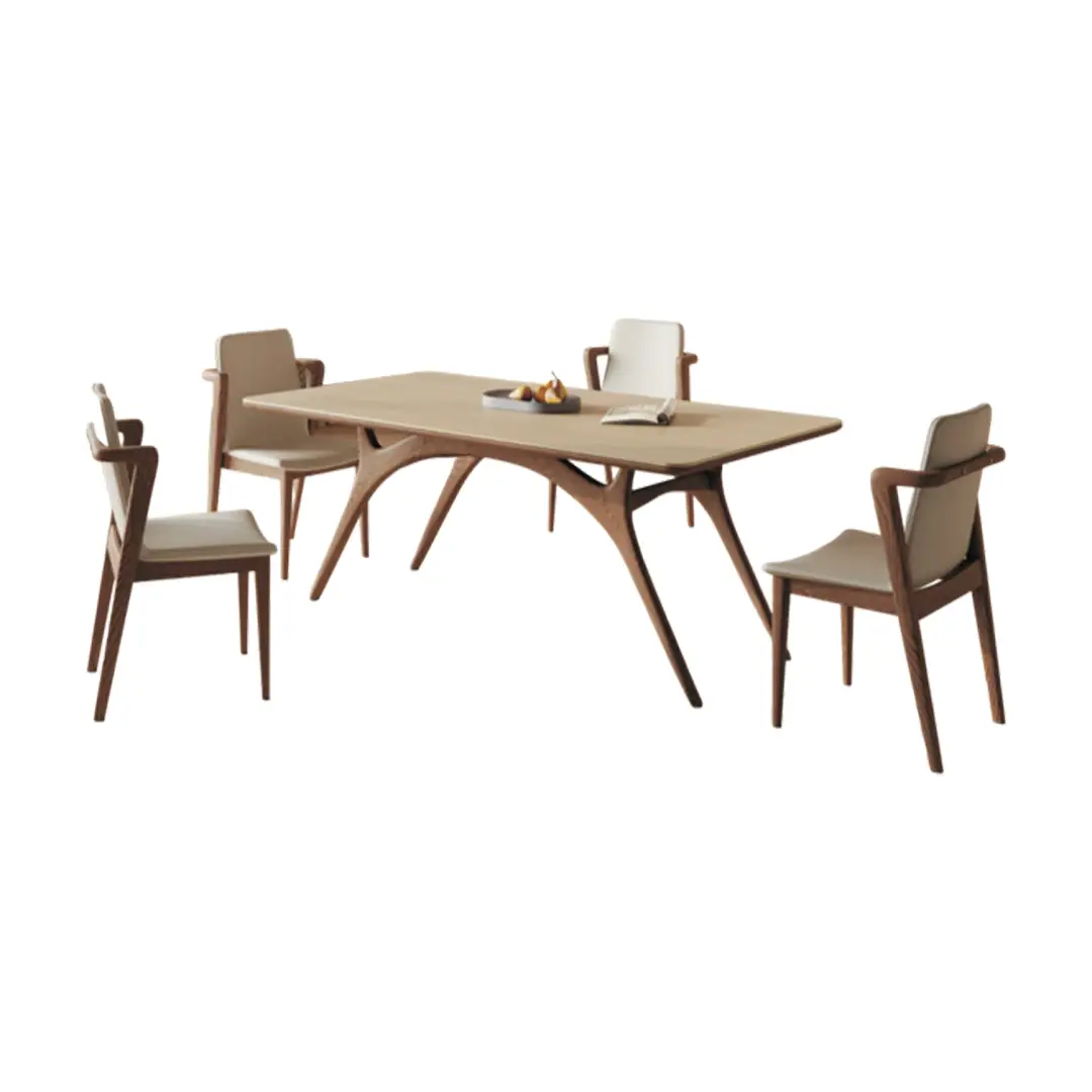 Diseño refinado que combina un tablero en madera sobre una estructura de lÃneas curvas y orgánicas.