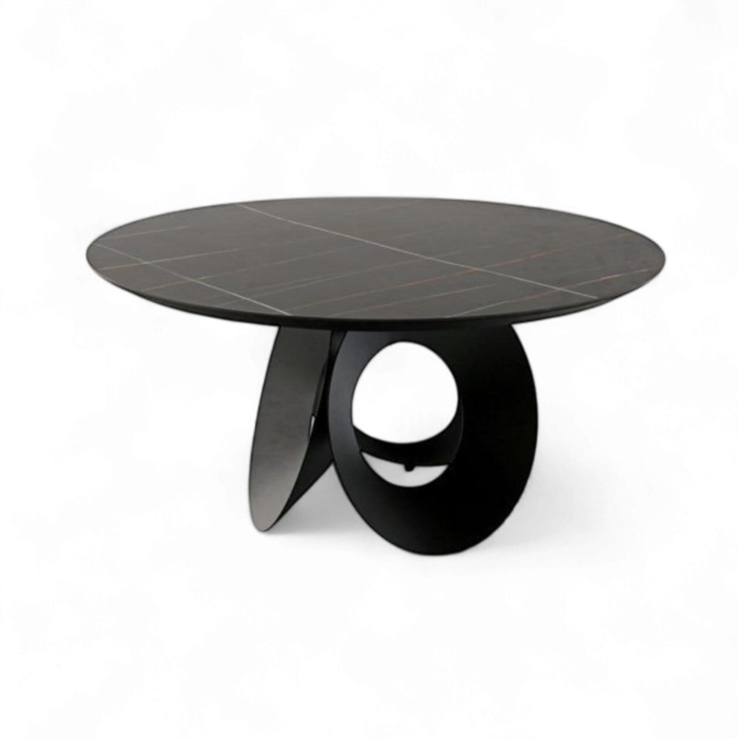 Negro intenso que enmarca una base de curvas unidas lo convierten en el centro de atención de cualquier espacio.