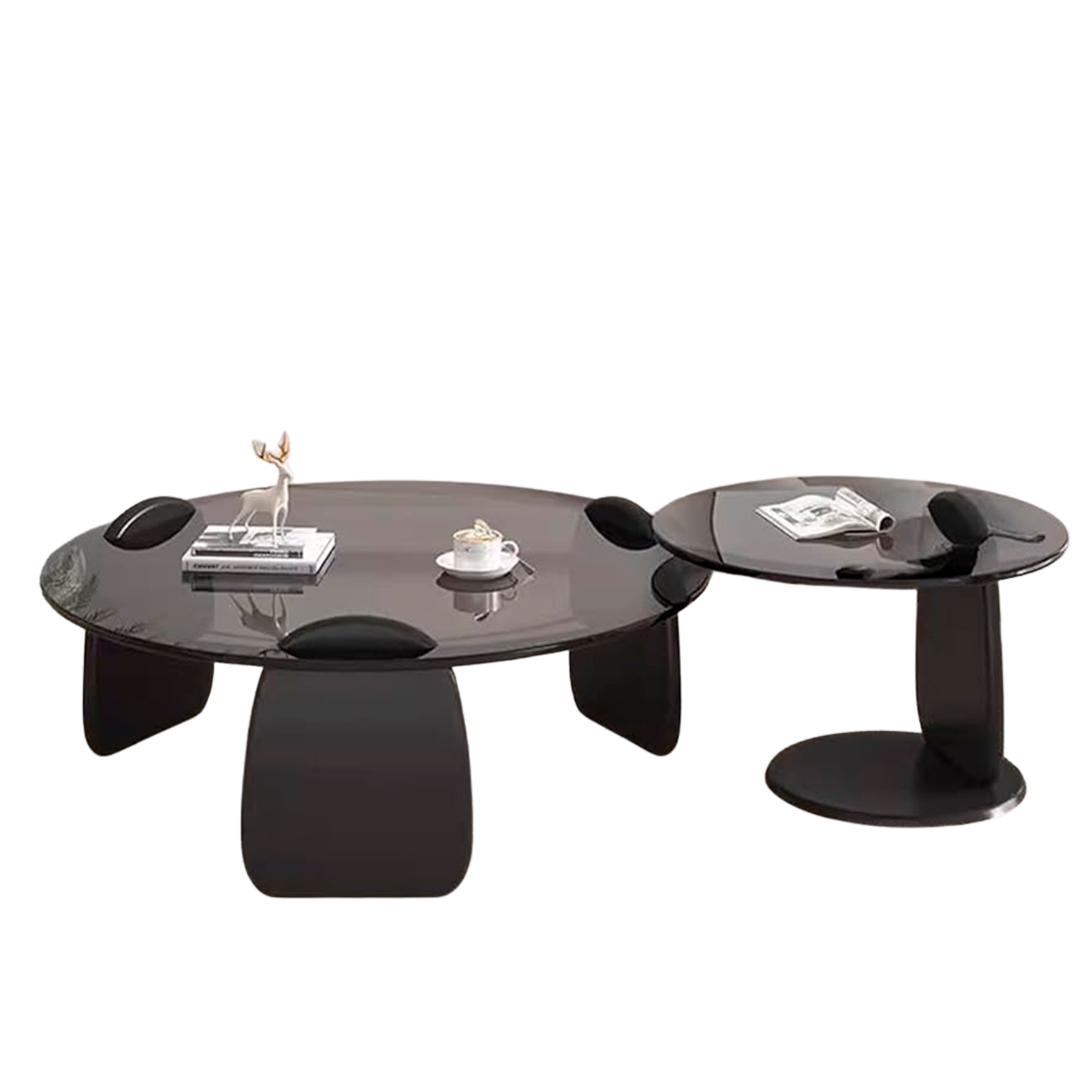 Vidrio y madera con formas orgánicas, entrelazados en un diseño que equilibra ligereza y fuerza.